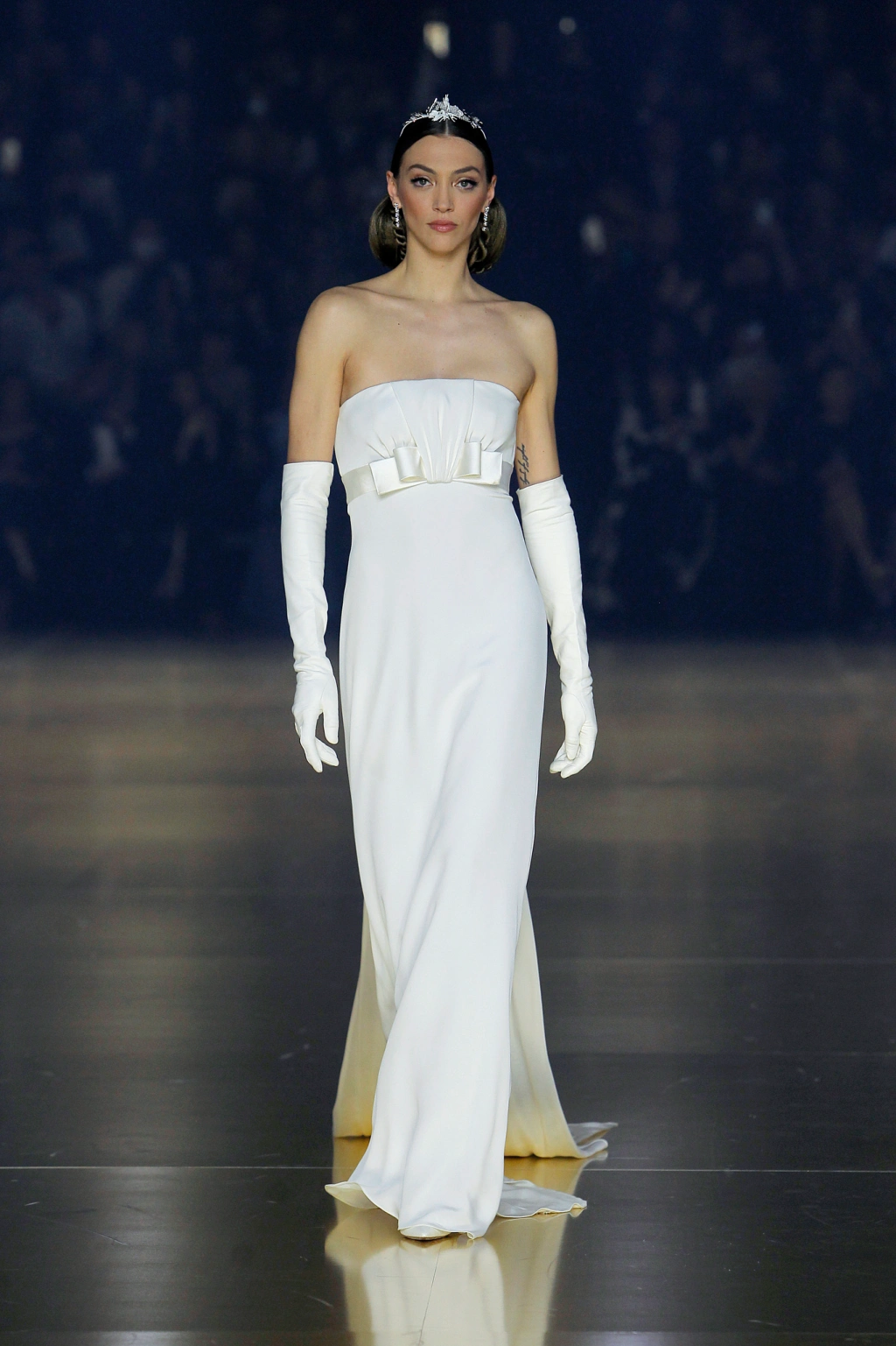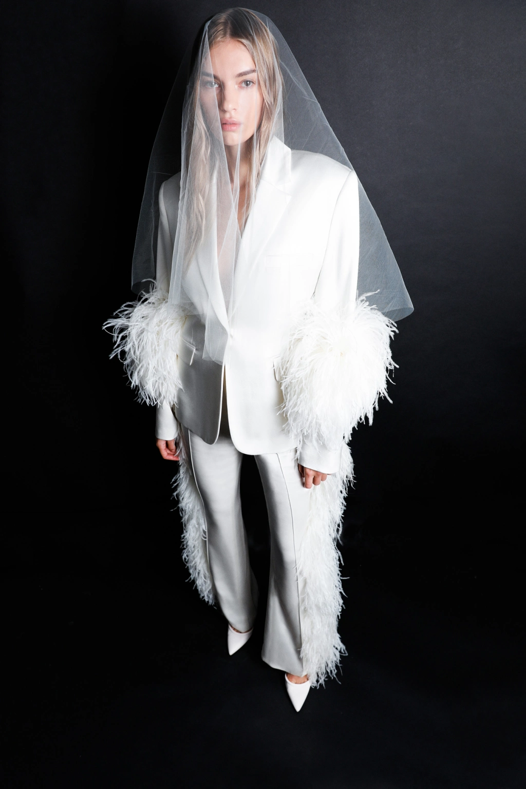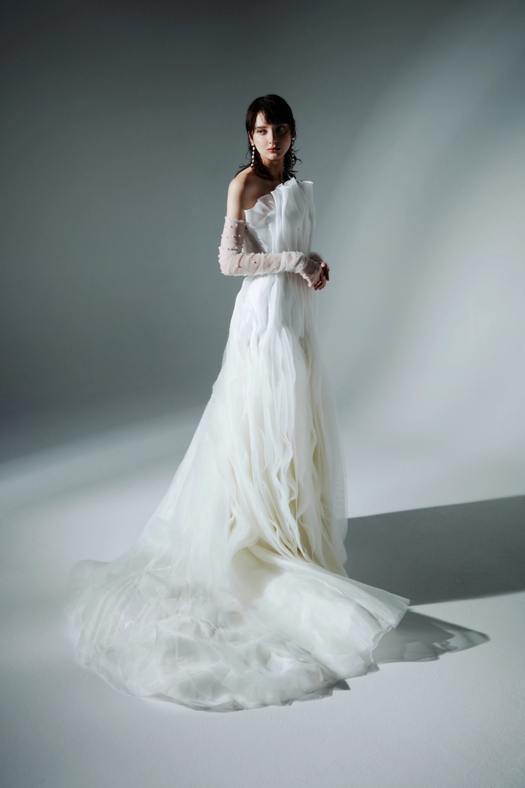 Gloves — an accessory steeped in wedding-day etiquette — reigned, but unconventional materials and playful proportions similar to those spotted on the spring runways of Prabal Gurung, Simone Rocha and Bottega Veneta were used to buck tradition, further aligning trends in bridal with those in ready-to-wear.