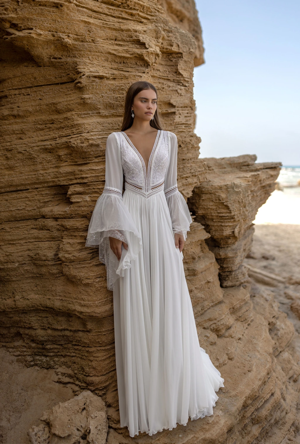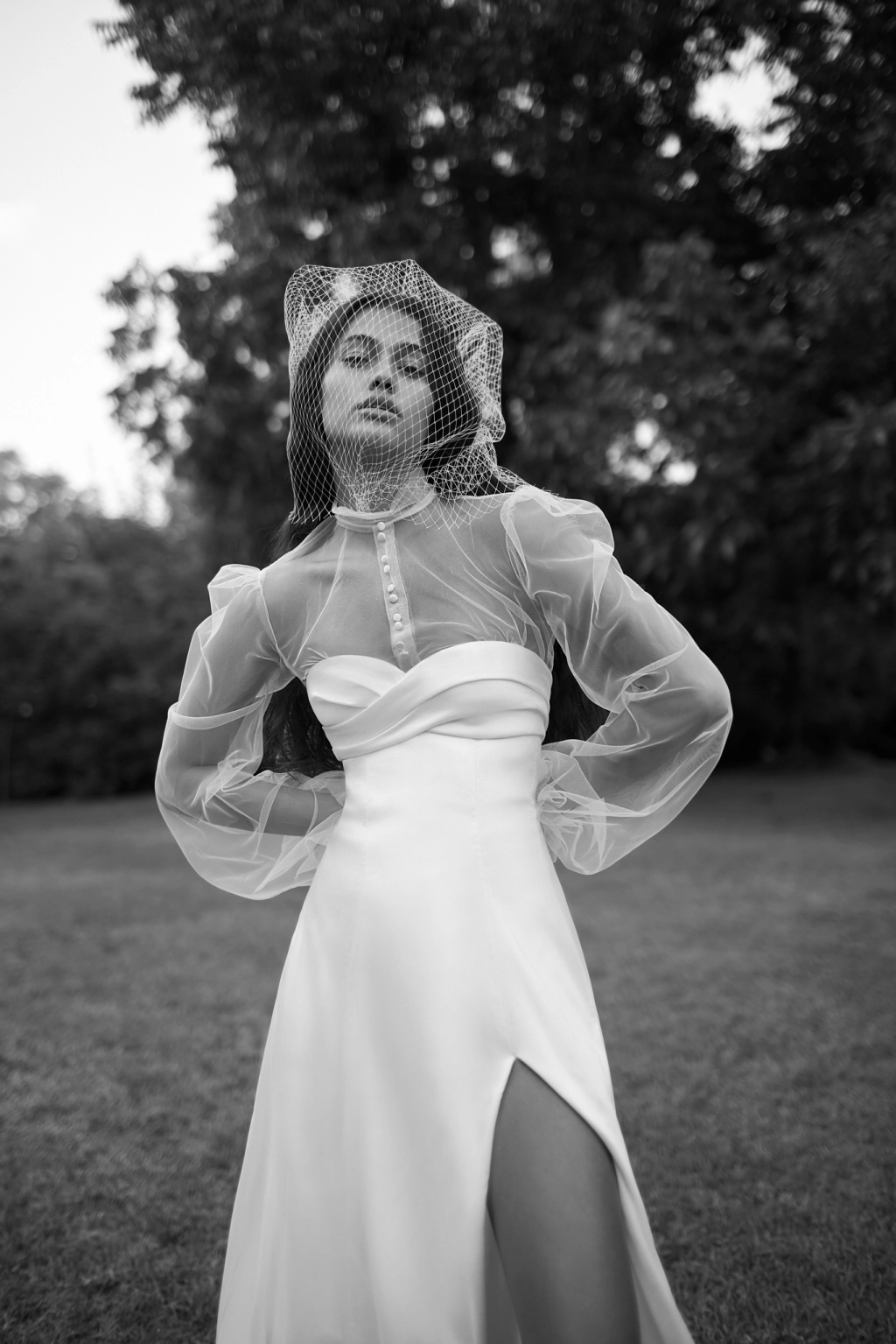 The Tudors knew architectural armwear could be useful when trying to leave a lasting impression. Sydney-based designer Christie Nicole agreed. “I feel a dramatic sleeve takes the design to that next level,” she said. For her most recent “Adele” collection, Nicole offered variations on the elasticated detachable sleeves that have become a signature, striking a chord with clients wishing for a customizable look. “I’m finding some brides love a sleeve to cover up and then others love it as a fashion statement.” Either way, she said, “My brides definitely take a risk.”