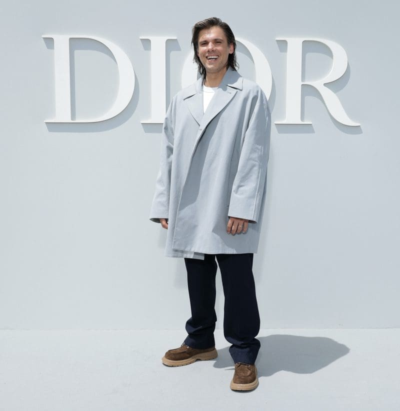 Maluma embodied chic in a Dior Men suit that played with texture and the theme of lightness. At the same time, Ryoma Takeuchi exhibited relaxed tailoring in a windowpane print suit, showcasing the brand’s fresh take on traditional patterns. Will Poulter, donning light hues, kept in line with the prevalent theme of understated elegance.