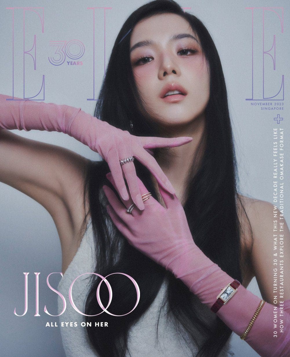 BLACKPINK‘s Jisoo, renowned for her versatile charms, dazzles as the face of ‘Elle Singapore’s November edition. Embodying a blend of sophistication and romance, she flawlessly dons ‘Cartier’ jewelry complemented by pastel holiday attire, setting a dreamy, festive aura.