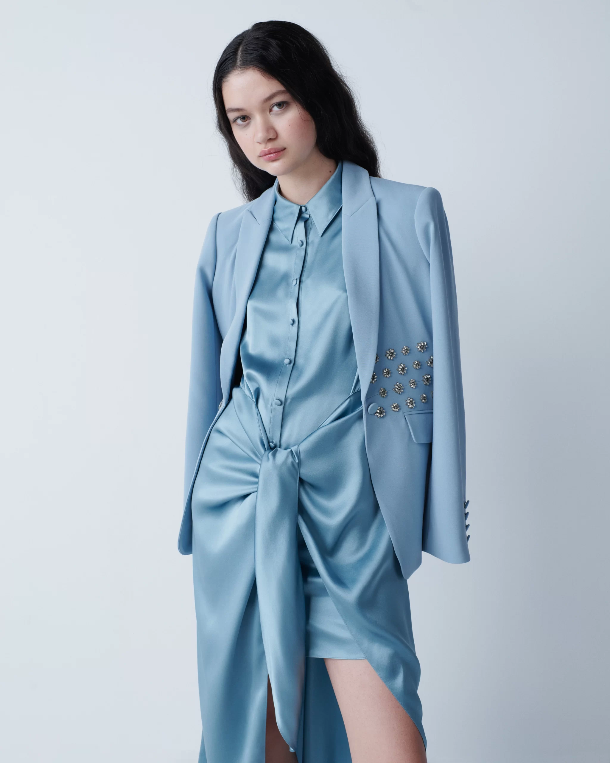Takeaway: Siskin’s signature slinky draping paired with masculine suiting make the case for pieces to wear throughout the year.