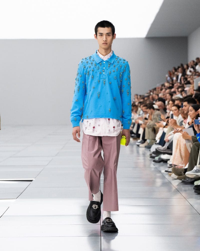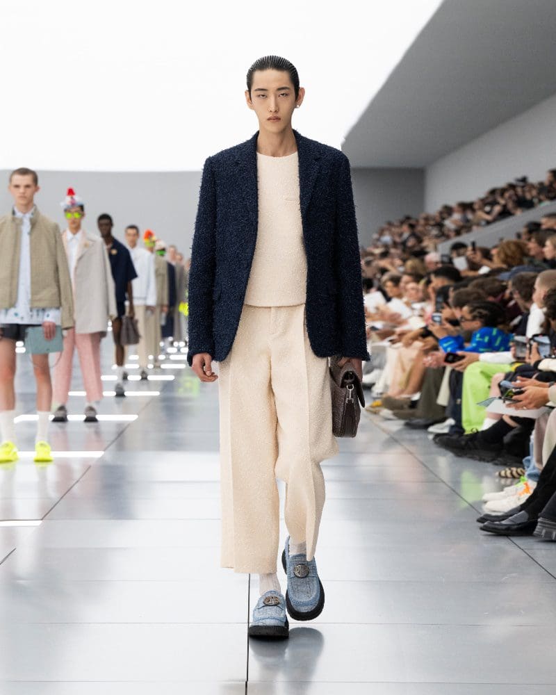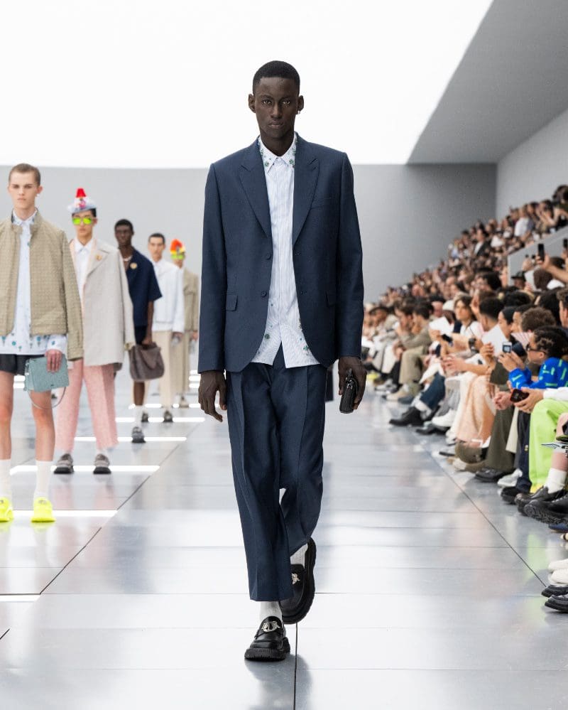 Kim Jones, the artistic director of Dior Men, presents the spring-summer 2024 collection as a testament to the core belief of Dior: “it is all about the clothes.” Celebrating his fifth year and collection at Dior Men, Jones pays homage to the past while shaping the future with this collection.