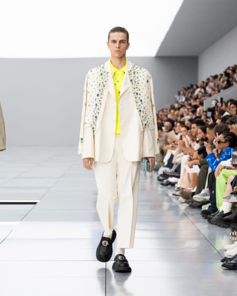 Dior Men’s Spring-Summer 2024 collection, under the creative direction of Kim Jones, beautifully blends past, present, and future, showcasing a unique fusion of influences and celebrating Dior’s enduring elegance.