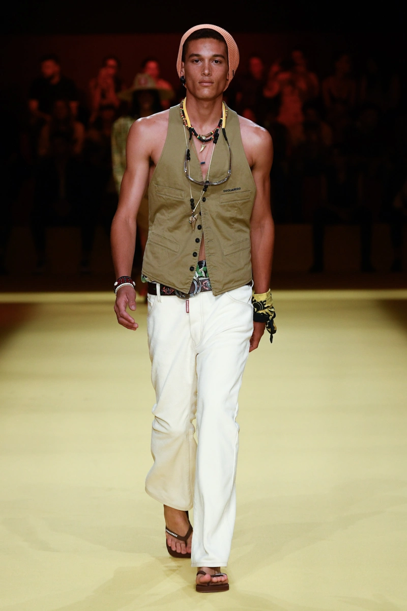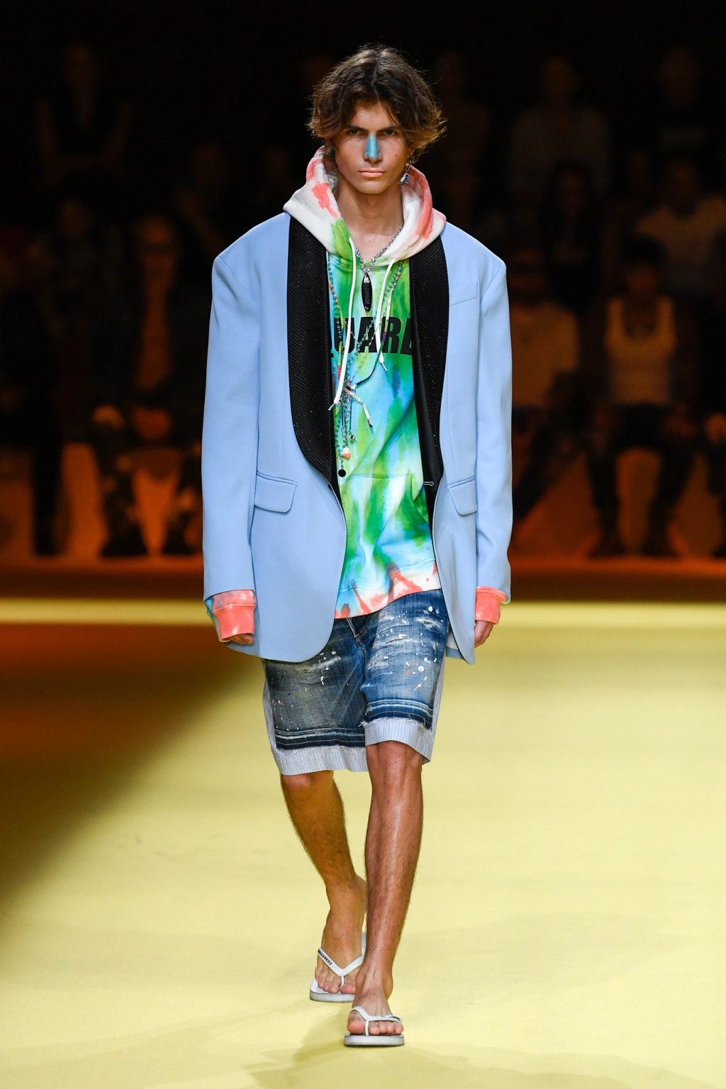 It was officially flip-flop season at Dsquared2, where Dean and Dan Caten were shod in the comfy footwear backstage at their men’s show, which kicked off a sultry fashion week in Milan.