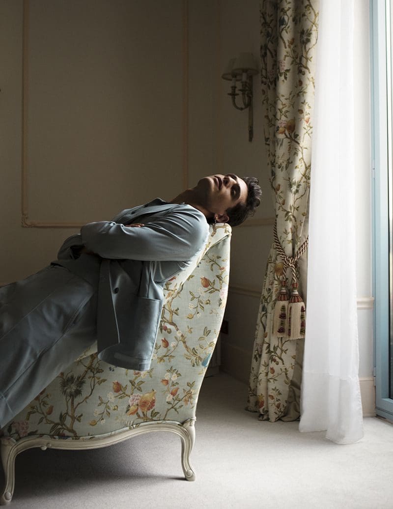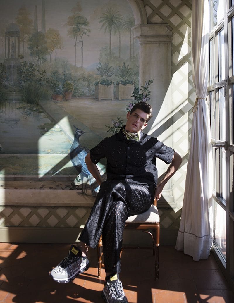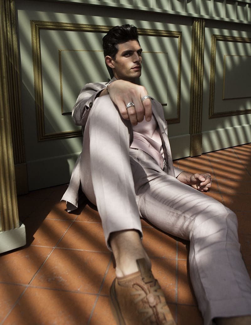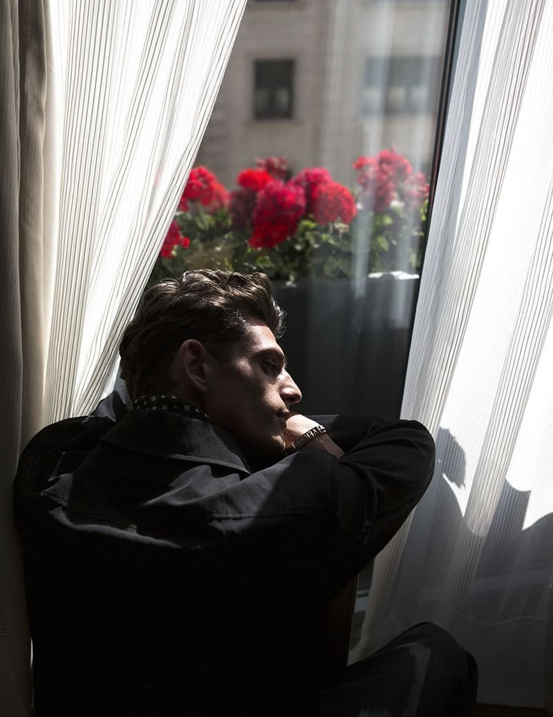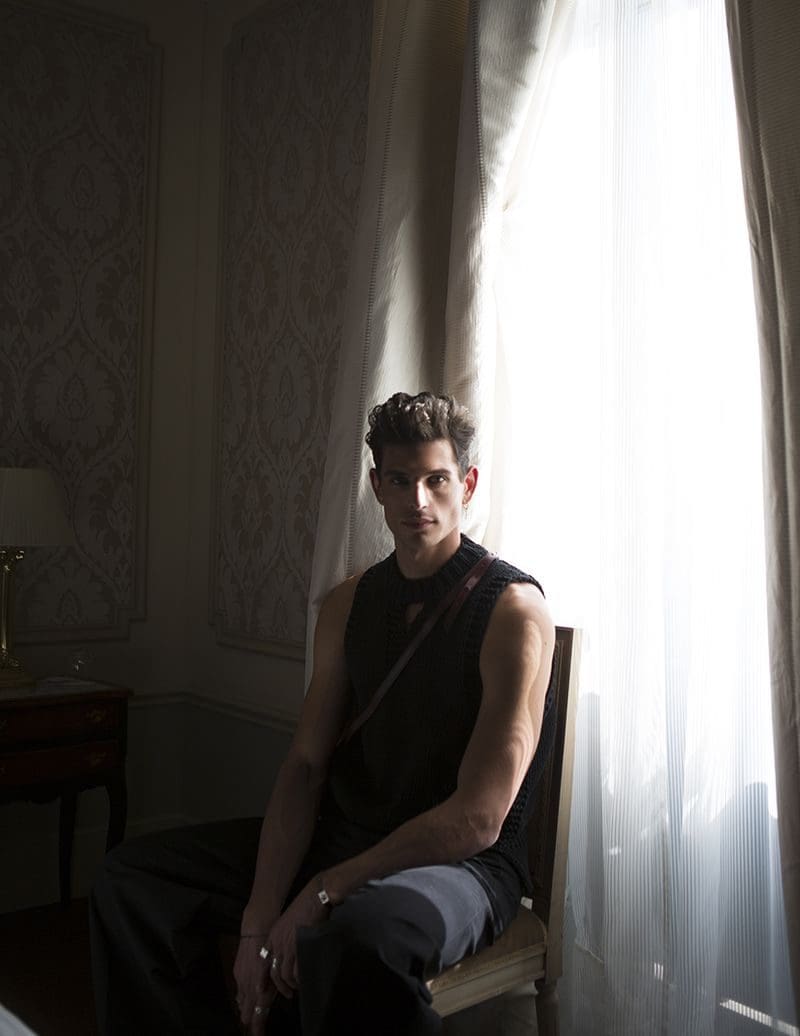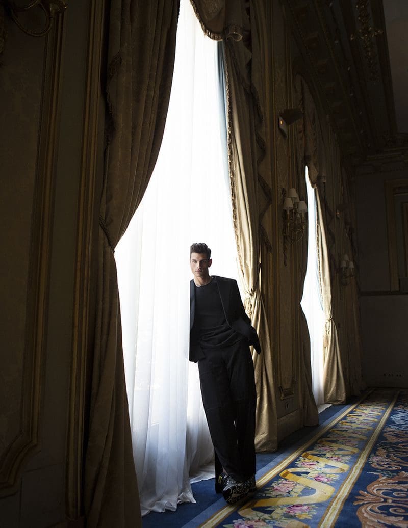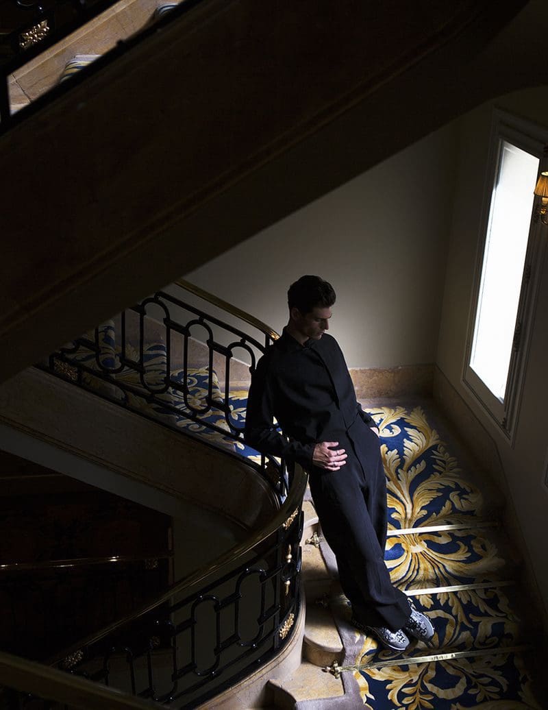 The magic behind the lens is attributed to the renowned photographer Karl Simone. Through Simone’s artistic vision, Pau Ramis emerges as a figure of elegance and grace. As the sun’s rays cascade through the hotel windows, casting an ethereal glow, Simone expertly manipulates the interplay between light and shadow, infusing each frame with intrigue and depth.