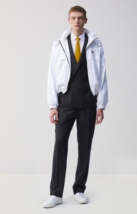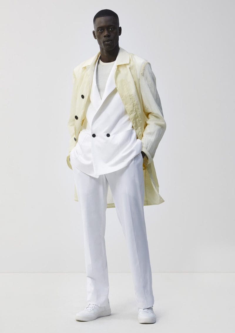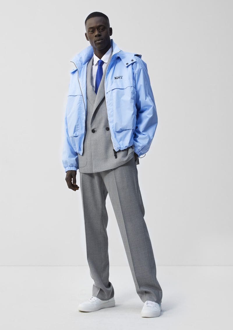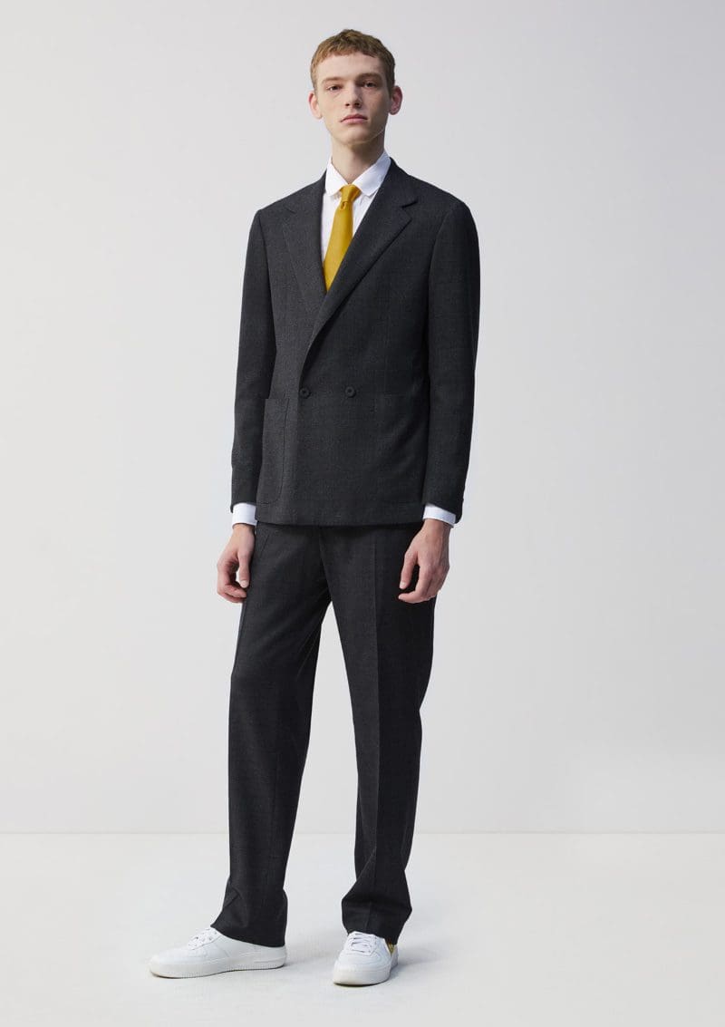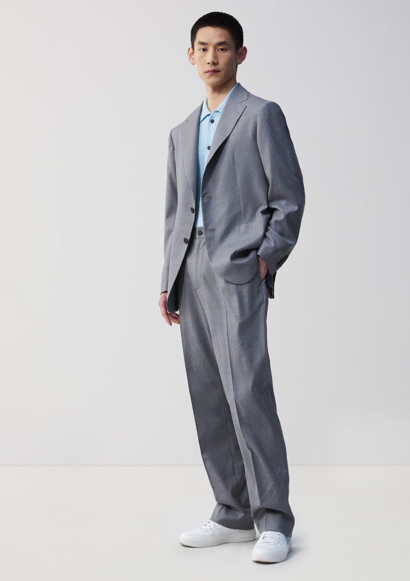 This collection features a captivating array of fluid, unstructured suits, accentuated by elongated jackets with slim, relaxed lapels. The twins have meticulously balanced every detail, subtly revising the fit to be softer and more relaxed—a refreshing departure from the stiffness of traditional men’s attire.