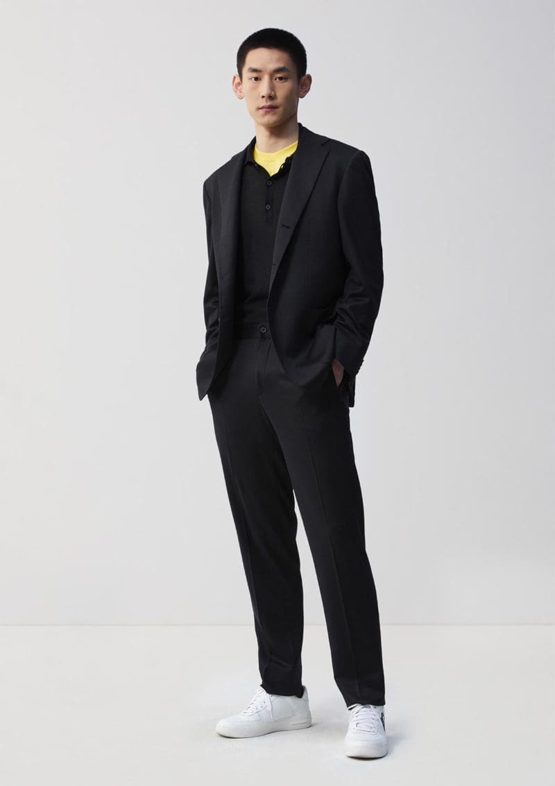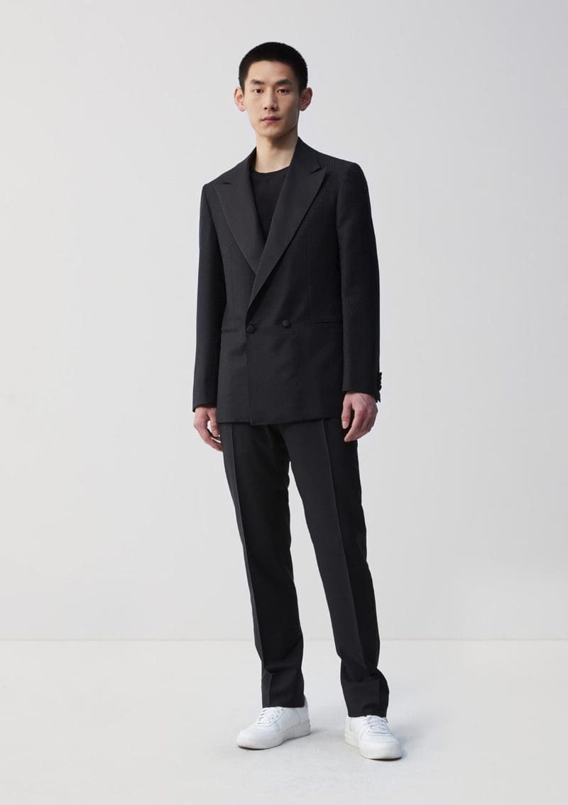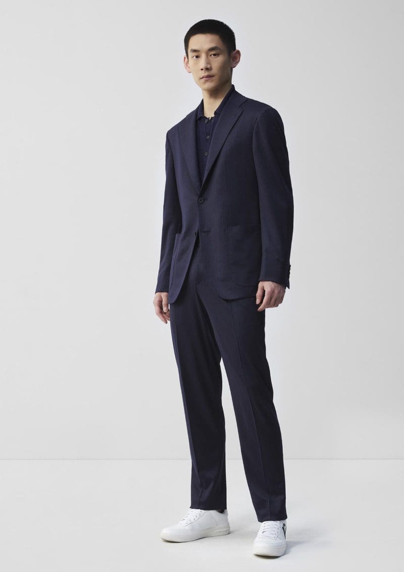 The party selection in the KNT collection showcases dinner jackets in ultra-lightweight cool wool, alongside double-breasted and single-breasted jackets with classic lapels. This selection brings a subtle charm to warm summer evenings.