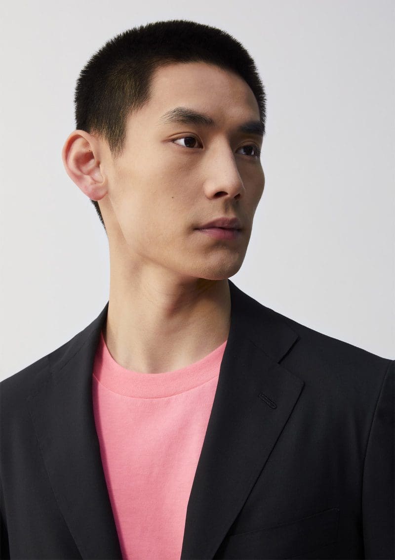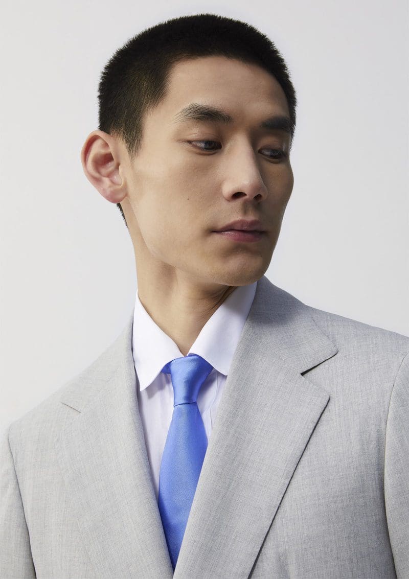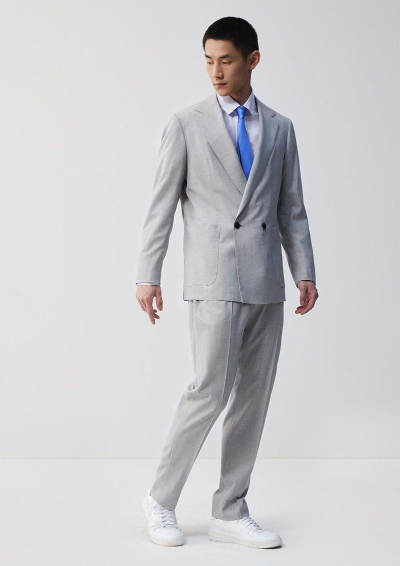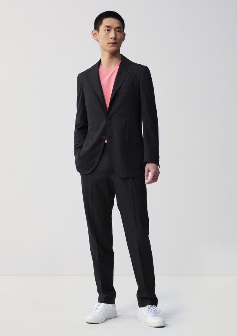 The party selection in the KNT collection showcases dinner jackets in ultra-lightweight cool wool, alongside double-breasted and single-breasted jackets with classic lapels. This selection brings a subtle charm to warm summer evenings.