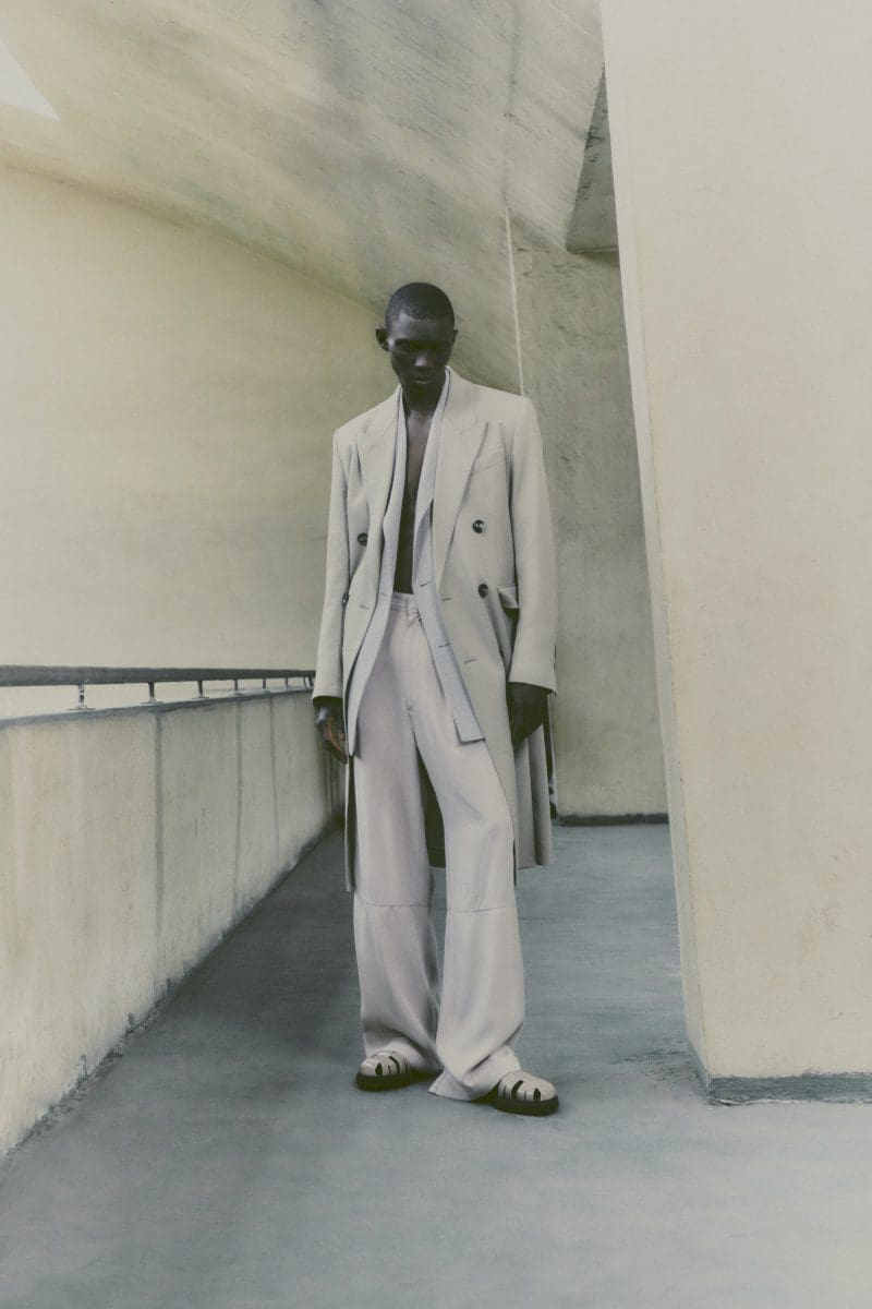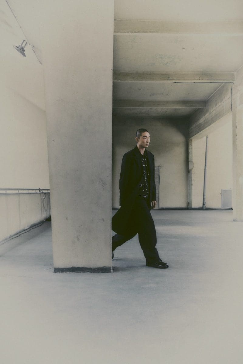 Fernando Cabral showcased the collection’s more relaxed side with a tailored ensemble that exudes effortless style. The monochromatic black outfits worn by Malick Bodian and Sang Woo Kim were statement pieces, demonstrating the power of a single color in creating a bold and sophisticated look.