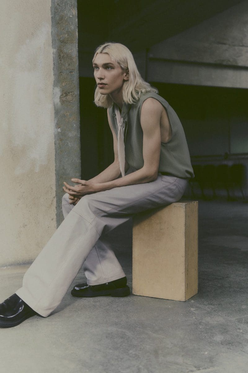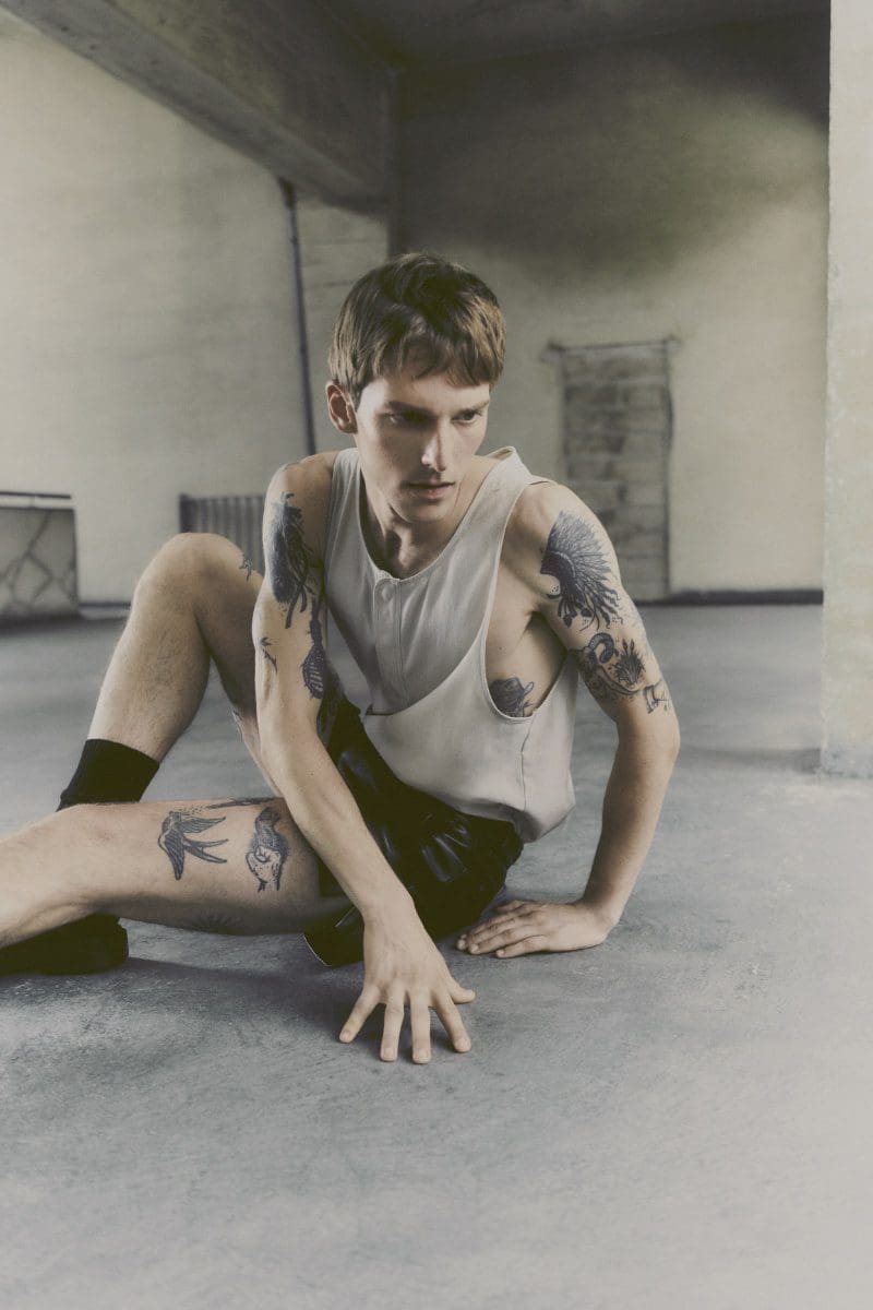Noah Hanes epitomized minimalist style in a sleeveless top, while Quentin Demeester drew attention in a henley tank paired with leather shorts. These pieces highlight the collection’s focus on practicality and comfort, without compromising style.