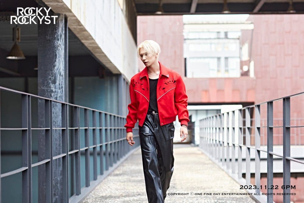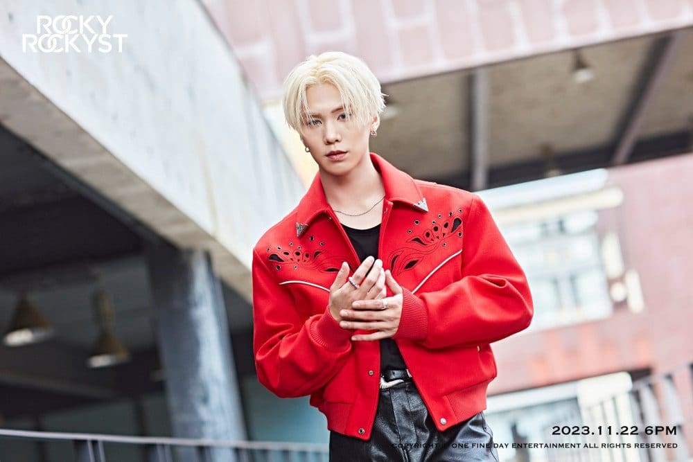 Rocky, once part of the sensational group ASTRO, is all set to captivate fans with his solo venture, as revealed in the latest ‘Red’ version concept photos for his inaugural mini album ‘ROCKYST. The shift to a solo career follows his departure from ASTRO and Fantagio, with Rocky taking the reins of his artistic direction through his newly established OneFineDay Entertainment.