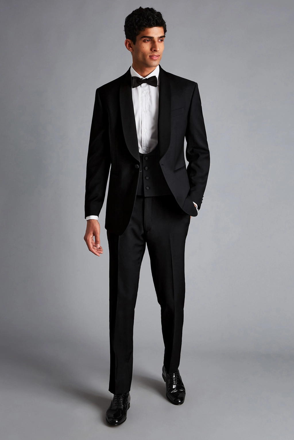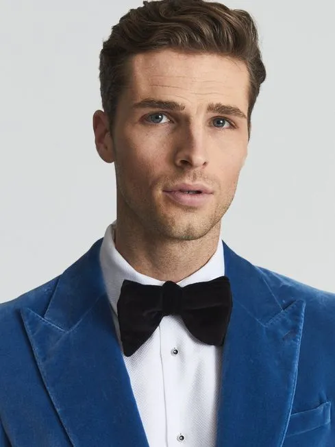 Beckham opted for a sartorial, custom black Dior suit with crisp white shirt, classic bow tie and single Albert chain. The outfit embodied the modern-meets-traditional look with an homage to classic Edwardian and British details.