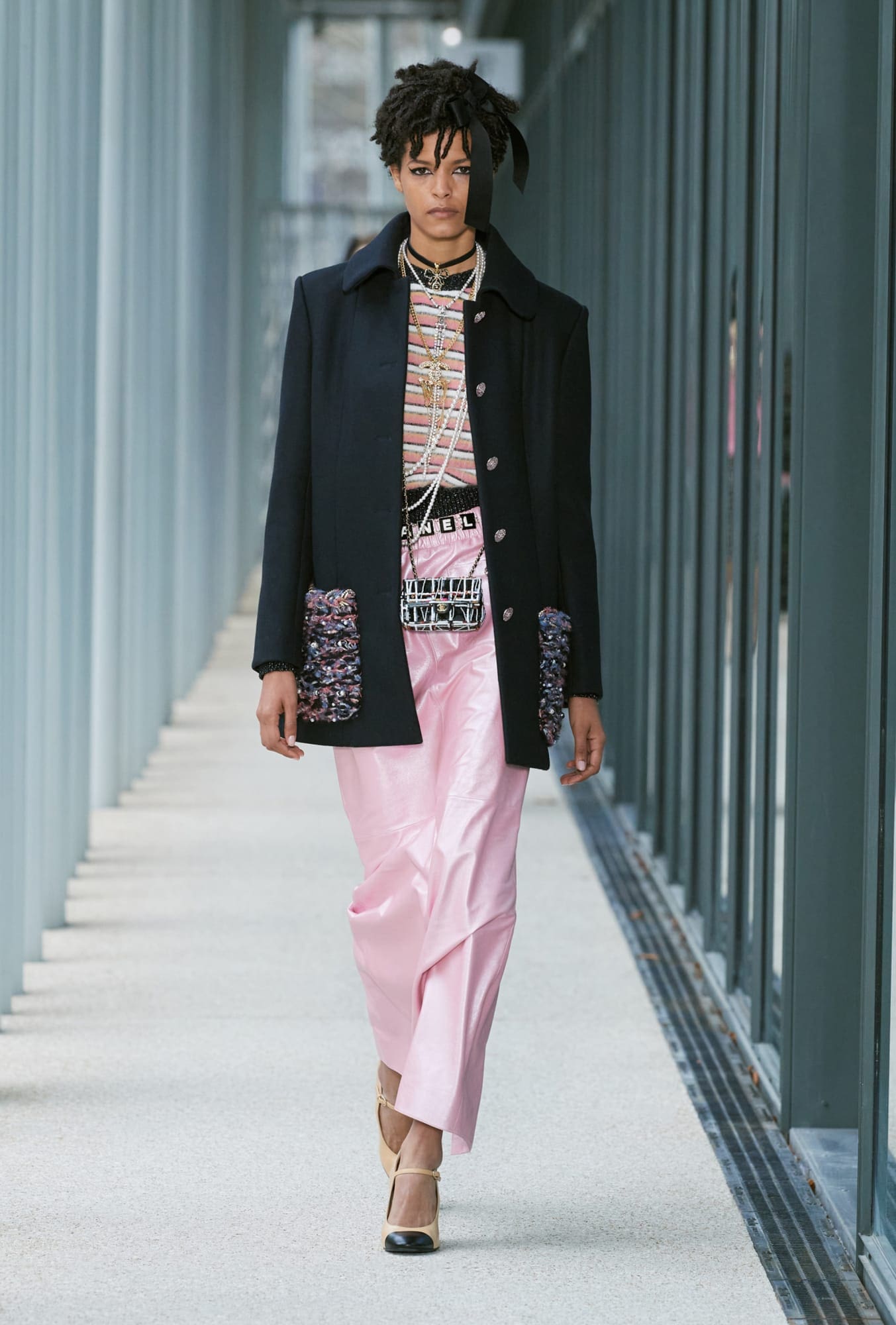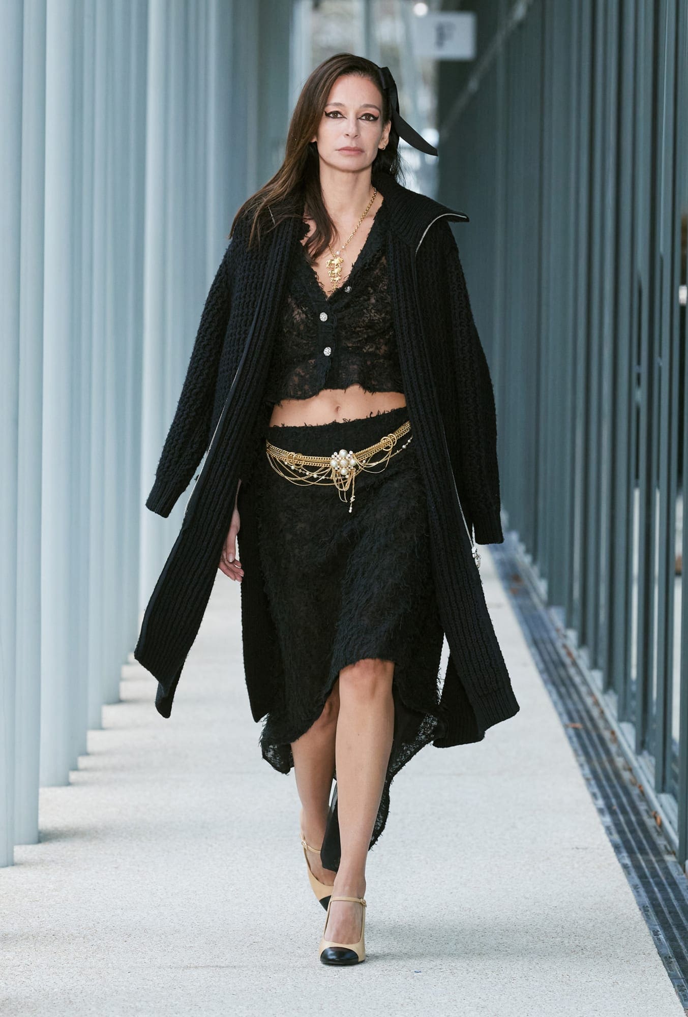 More importantly, there were some truly covetable pieces in the mix. There will almost certainly be a mad dash for those double-C cardigans and for that double-C pleated miniskirt, no matter the cost (and for the latter, that price will probably be high; it’s reportedly the most complicated pleating job Lognon has ever done for Chanel). More nods to the Gen-Z customer came with micro belts at the occasionally bare waist, which featured tiny bows; and those giant black hair bows, so haphazardly placed, will surely fly off shelves. Also chic were Viard’s maxi-length skirts opened high up the thigh.