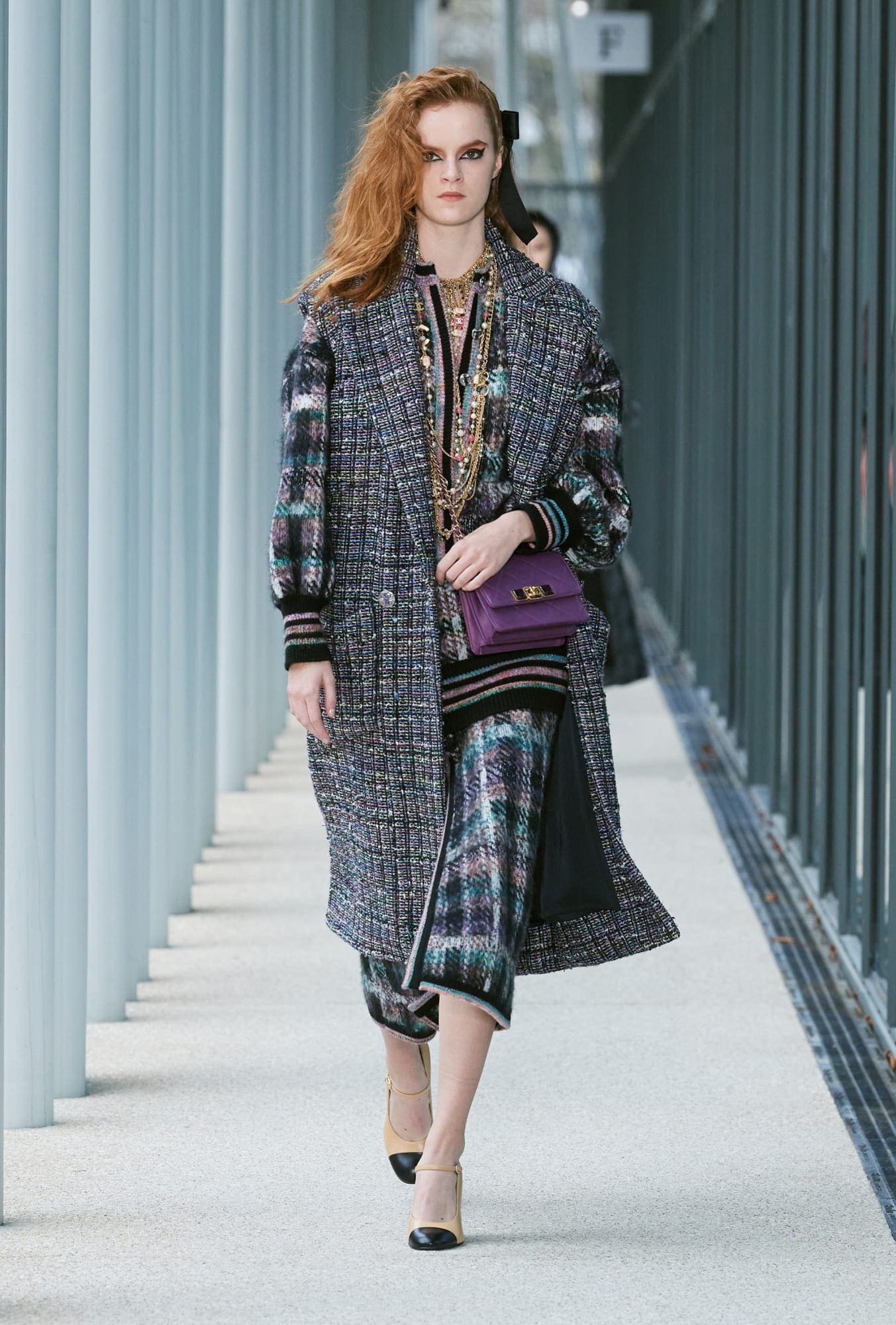 But the specialists themselves have perhaps never been so literally a source of inspiration as they were on Tuesday. The 2022 Métiers d’Art collection is “very metropolitan yet sophisticated, with tweed jackets with sweatshirt sleeves, graffiti-style embroidery in coloured beads by Lesage, voluminous purple or royal blue knit Bermuda short-outfits, and casual coats worn open,” per Viard. “Many of the embroideries are inspired by the structure of the building itself, such as those by Montex, which are very graphic and in silver sequins.”